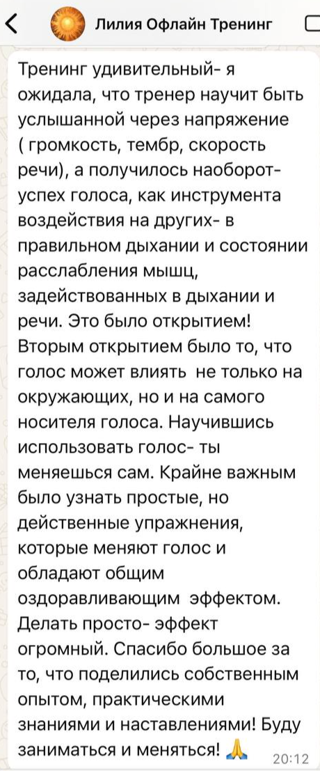 Очный практический тренинг «Голос - как инструмент влияния на людей, обстоятельства своей жизни и себя»